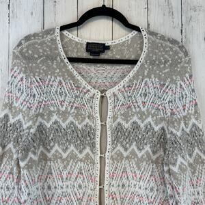 Pendleton Cream/Tan Southwestern Long Sleeve Crochet Sweater Cardigan Size Large