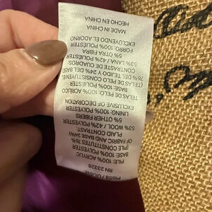 • Material Composition: Constructed with a 100% Acrylic pile, 100% Polyester base, 53% Wool, 45% Polyester, 2% Other plaid contrast, and 100% Polyester lining.