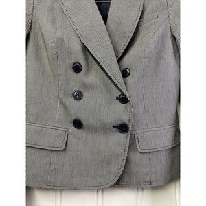 Pendleton Double Breasted Blazer Womens Sz 4 Gray Pinstripe Cotton Poly Stretch