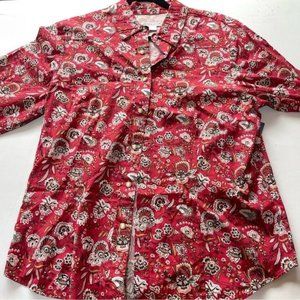 Pendleton Floral Paisley Long Sleeve Button Down Dress Shirt Red Pink Large