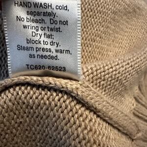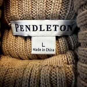 Pendleton Full Zip Sweater Cotton Funnel Neck Pockets Ribbed Knit Tan Large