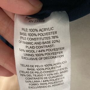 Dark blue plaid jacket, 19.5 in pit to pit, 24.5 length, zip up, fuzzy, in good condition