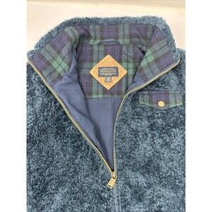 Pendleton Fuzzy Zip Jacket Women's Sherpa Coat Navy Blue Small, Chest Pocket