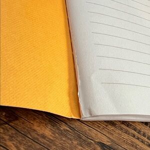 Cream notebook is missing first page and corner has a dent. Black notebook has slight crease. Please see photos. Otherwise in very good condition.