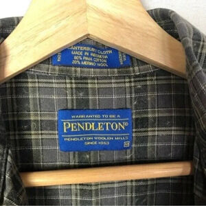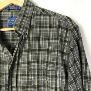 Pendleton Gray & Black Plaid Wool & Cotton Long Sleeve Button Down M