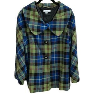 Pendleton Green Plaid 100% Virgin Wool Jacket/Blazer Modern Bell Sleeves 14