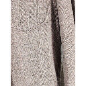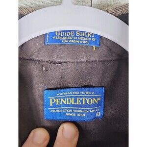 A few pin sized holes in the wool, see photos. The Pendleton Guide Shirt is a stylish and versatile men's flannel shirt made from 100% Virgin Wool in a rich solid brown color. This shirt features a classic collared neckline with a button-up closure and long sleeves, making it suitable for a variety of occasions including casual outings, formal events, and even workwear. The regular fit and size Large ensure a comfortable and flattering silhouette, while the wool fabric adds warmth and durability, perfect for all seasons. This shirt is a timeless addition to any man's wardrobe, with a touch of sophistication and quality from the renowned brand Pendleton.
