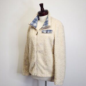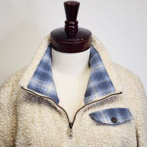 Pendleton Hi-Pile Fuzzy Sherpa Full Zip Fleece Jacket Ivory w/ Blue Plaid Trim