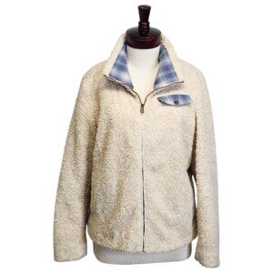 Pendleton Hi-Pile Fuzzy Sherpa Full Zip Fleece Jacket Ivory, Plaid Trim Women XL