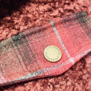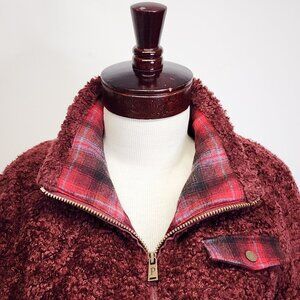 Pendleton Hi-Pile Fuzzy Sherpa Full Zip Fleece Jacket Maroon Plaid Trim Womens L
