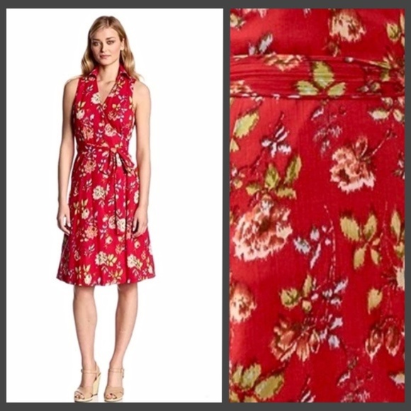- Allover red & floral ikat print in slightly crinkled woven cotton