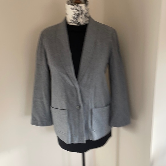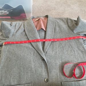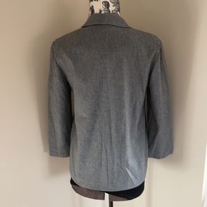 Light Charcoal Gray jacket. 100% wall dry clean only made in the USA measurement across front is 19 inches.