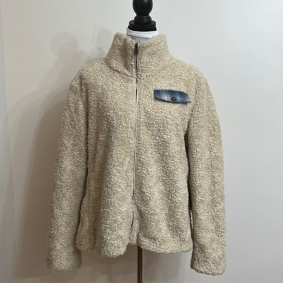 Pendleton Women's Teddy Sherpa Jacket Full Zip Size XL Ivory/Tan