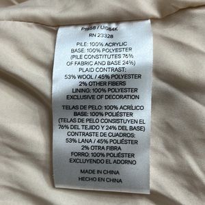 Pile: 100% Acrylic Base: 100% Polyester Plaid Contrast: 53% Wool | 45% Polyester | 2% Other Lining: 100% Polyester