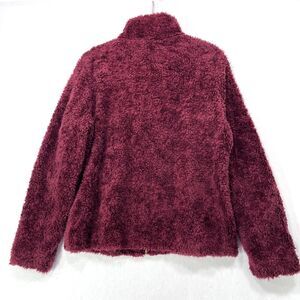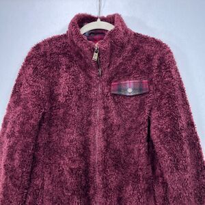 Pendleton Jacket Women M Burgundy High Pile Sherpa Fleece Wool Plaid Details