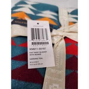 Pendleton Knit Baby Blanket 30 x 40 with Beanie Set Harding Teal Pattern NWT