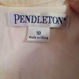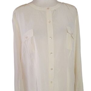 Pendleton Light Cream Button Front Pleat Detail 100% Silk Blouse Size 18