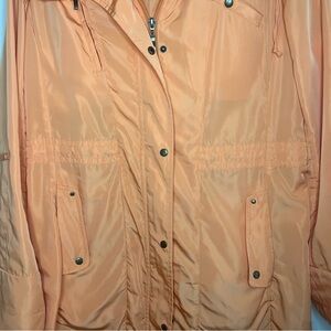 Size M. Great condition, has writing near the tag both no other flaws. Buttons and zipper closure. Multiple pockets. Thin material.