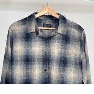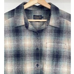 Pendleton Made in USA Wool Blue Plaid Button Up Mens Shirt Sz L Lodge One Pocket