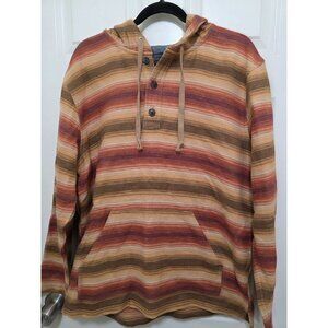 Pendleton Men Double soft Striped Hooded Button-Up Pullover Sweatshirt Size M