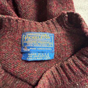 Pendleton Mens Burgundy Shetland Wool Sweater Large Crew Neck Pullover USA Made