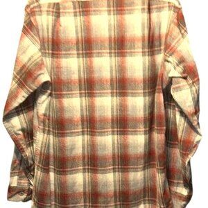 Pendleton Mens Long Plaid Wool Shirt Gray/Red Buttons & Pockets