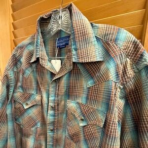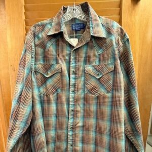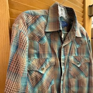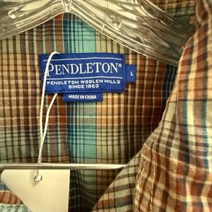 Pendleton Men's Long Sleeve Blue/Brown Plaid Cotton Button Shirt, Sz: Large, EUC