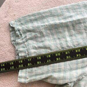This Pendleton men's short-sleeve button-up shirt in size large offers casual sophistication. Designed with breathable linen fabric in a green plaid pattern, it ensures comfort and style for everyday wear. Perfect for warm weather or layered looks.
