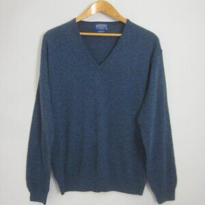 Pendleton Mens Medium Heather Blue 100% Lambswool V Neck LS Pullover Sweater M