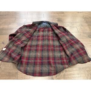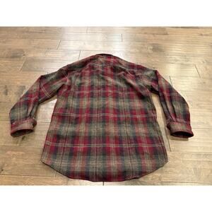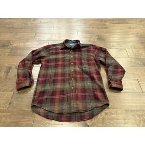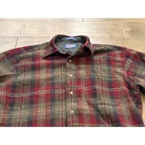 Pendleton Mens Red Plaid 100% Wool Long Sleeve Button Up Shirt M USA *Flaws*