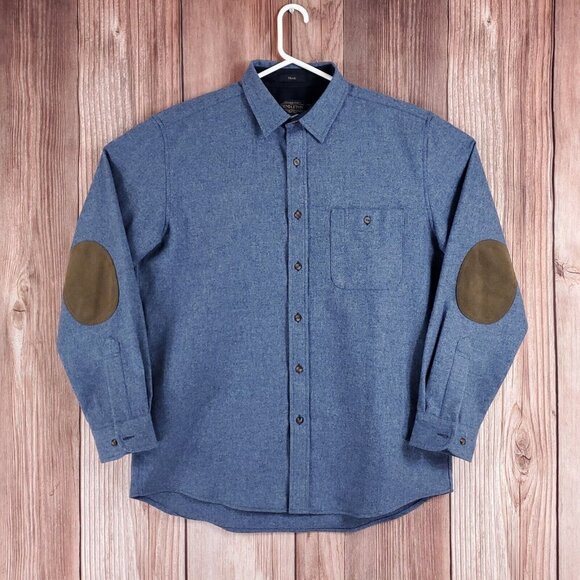 Pendleton Mens Size Large Trail Shirt Blue Virgin Wool Button Up Elbow Patch