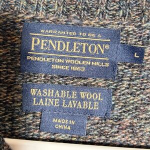Pendleton Mens Sweater Blue Green Fleck Shetland Wool Crewneck Washable SIZE L