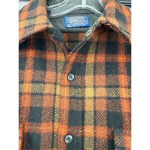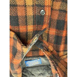 Pendleton Mens Virgin Wool Plaid Outdoor Jacket L Orange & Black USA FLAW READ