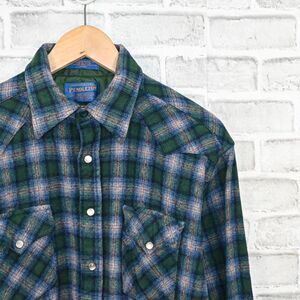 Pendleton Men's Western Pearl Snap Shirt Wool Green Blue Plaid sz Medium
