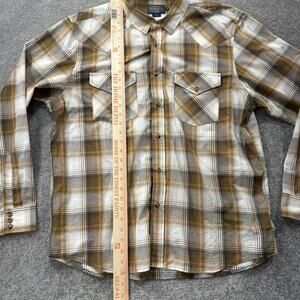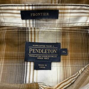 Pendleton Mens XL Frontier Western Snap Button Plaid Shirt Brown Tan Long Sleeve