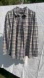 Men’s 100% cotton, button-down, gray, and white plaid. XL long sleeve. New without tags. Still has the extra button in the bag on the inside tag.