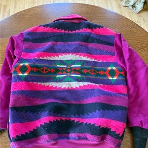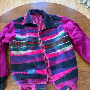 Eye-catching jacket with geometric design. Features a zip closure and classic collar. Ideal for a stylish look.