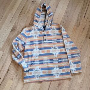 Mix of orange, blue, and cream hues. Men’s Pendleton Hoody size small and fits like a women’s medium