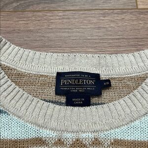 Stylish Pendleton sweater with intricate patterns. Features a blend of warm colors. Perfect for cozy wear.