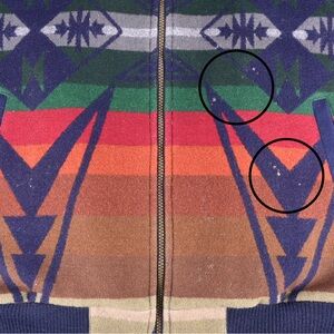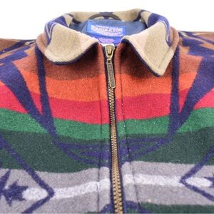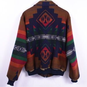 Vintage Pendleton wool blanket jacket in a size L featuring a bold Southwestern pattern and full interior lining.