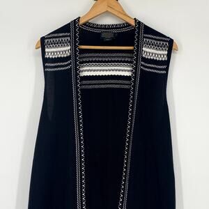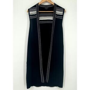 Pendleton Open Cardigan Long Sweater Vest Black w/White embroidery Womens Sz XS