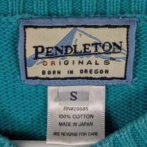 Pendleton Originals Sweater Small Teal Cotton V-Neck Long Sleeve Made in Japan