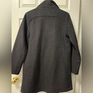 Pendleton 80% wool overcoat. Dark gray/black color with a classic striped lined inside. Worn only twice, like new! Size small, zipper and button combo to stay closed.