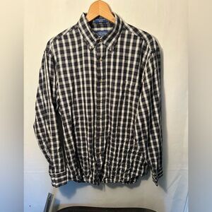 Pendleton Oxford Mens Plaid Black & White Green Long Sleeve Button Shirt Large