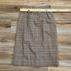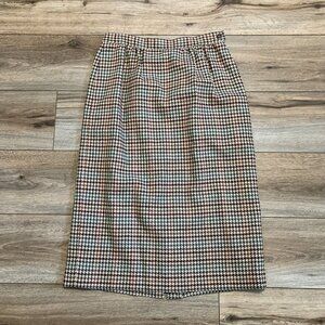 Pendleton Pencil Midi Skirt SZ 10 Tan Multi Houndstooth 100% Wool Vintage