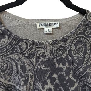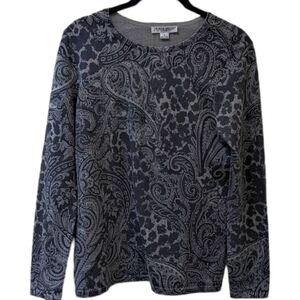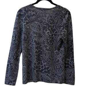 Pendleton Petite Grey & Black Merino Wool Paisley & Leopard Print Sweater (SP)
