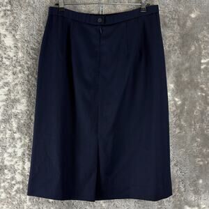 Pendleton Petite Size 12P Career Virgin Wool Midi Pencil Skirt Navy Button Zip