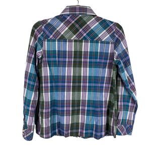 Pendleton Plaid 100% Cotton Button Front Long Sleeve Shirt Size M EUC Blue Green