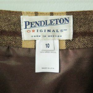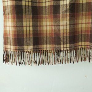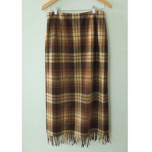 Pendleton Plaid Maxi Tan Plaid Long Pleated Vintage Wool Skirt with Fringe