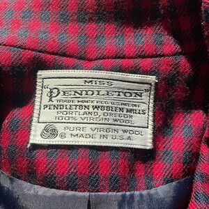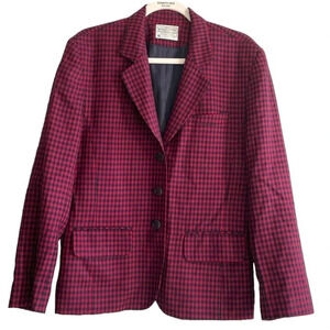 Pendleton Plaid Wool Blazer Vintage 80s 100% Wool Red & Navy Women’s size 10